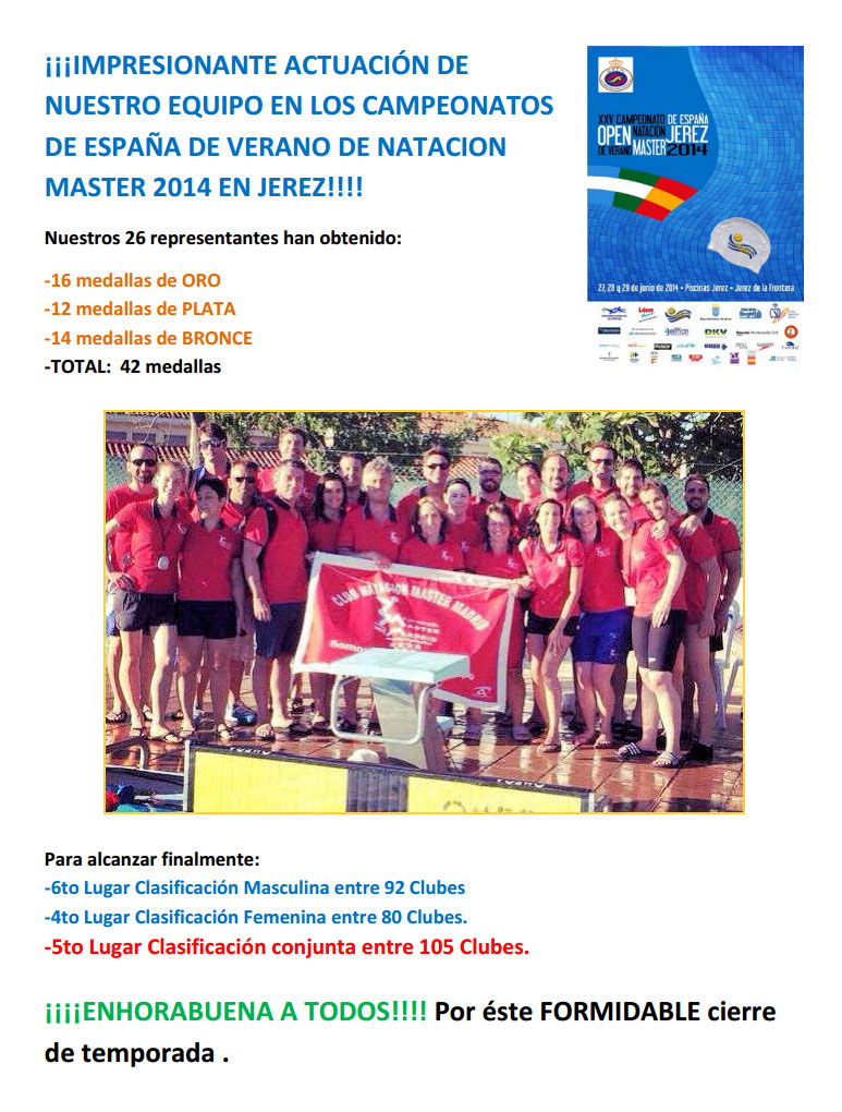 Club / Natacion ¡¡¡Impresionante Actuación de Nuestro Equipo en los Cpto. de España de Verano de Natación Master 2014 en Jerez!!! por admin30 junio, 201430 junio, 2014