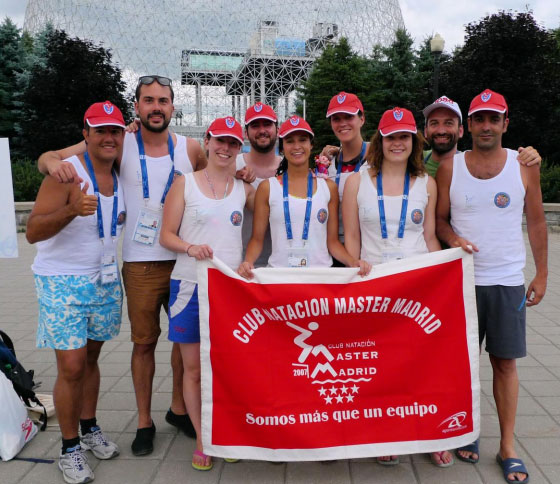 Con prácticamente la totalidad de los integrantes de nuestro club ya disfrutando de unas merecidas vacaciones veraniegas y/o disputando la temporada estival de travesías, hubo diez titanes que representaron al Club Natación Master Madrid en el XV Campeonato del Mundo Master celebrado en la ciudad canadiense de Montreal entre el 3 y el 9 de Agosto: Nuria, Christine, Marina, Cathy, Niall, Chema, Santana, Ernesto, Alfredo y Jorge.