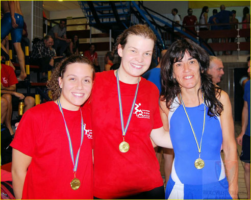 Entre nuestros campeones, hay que destacar los dobletes de cinco nadadores: María del Mar de Lago en 50m Braza y 100m Estilos (+45), Christine Giesen en 50m Mariposa y 100m Estilos (+25), Gisela Ramos en 50m Braza y 100m Estilos (+20), José Antonio Aponte en 50m Espalda y 100m Estilos (+45) y Luís Joaquín Sanguino en 50m Braza y 100m Estilos (+50). Además, Gisela se alzó con el triunfo absoluto en sus dos pruebas con unos tiempos de 36”34 en 50m Braza y 1’12”64 en 100m Estilos. También se alzaron con el triunfo Jesús Gómez en 50m (+40) y Luis Hernández (+35) ambos en 50m espalda, así como nuestros veteranos Luis A. Caro en 50m brazas (+70) y Angel Juan Tossat (+80) en 50 m Libres .