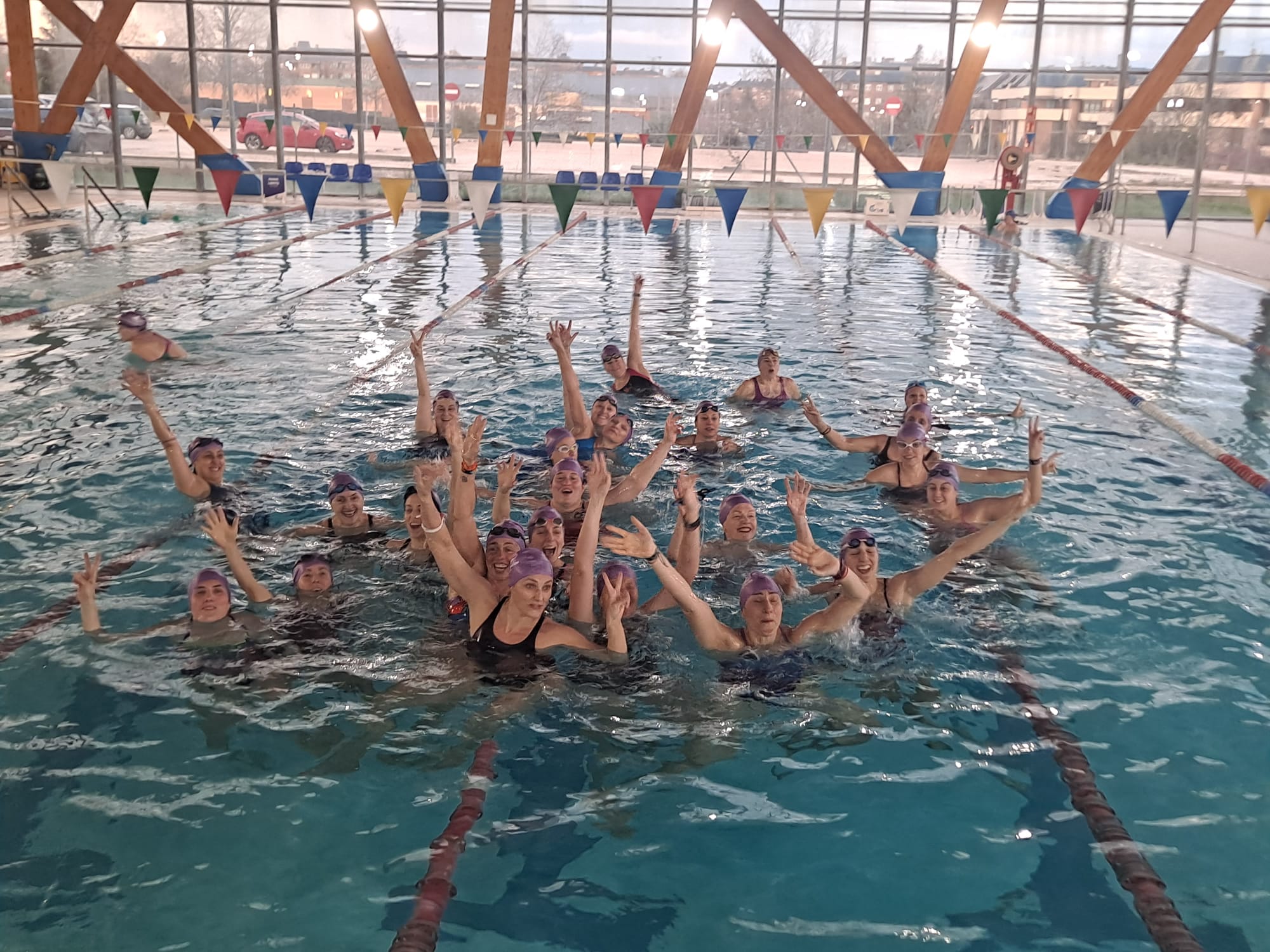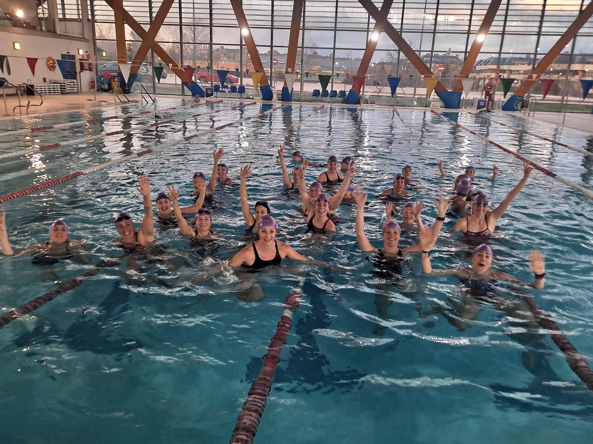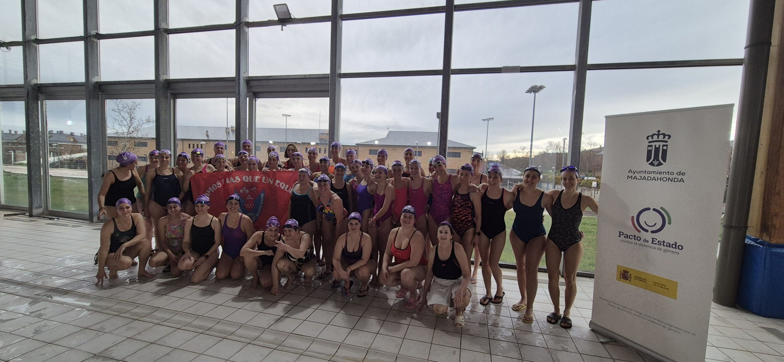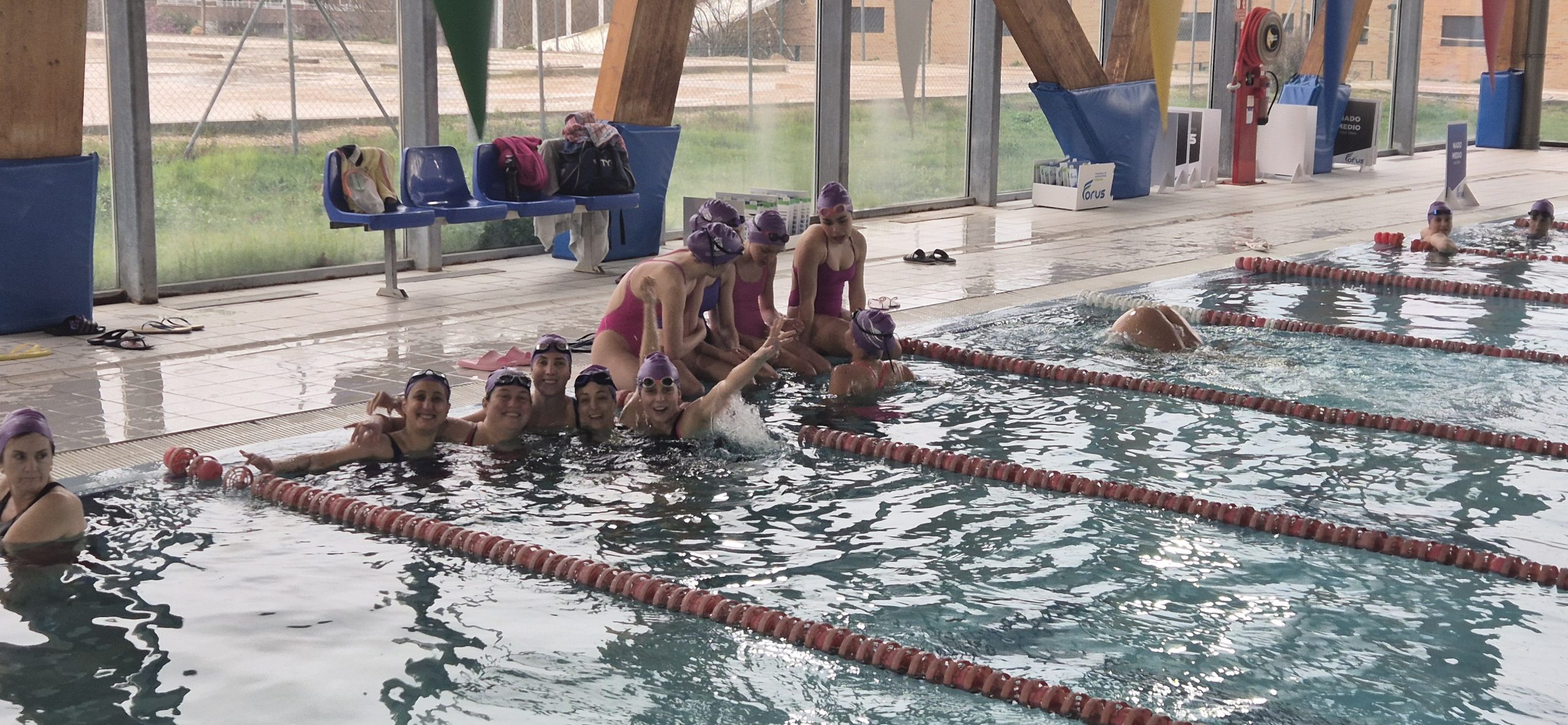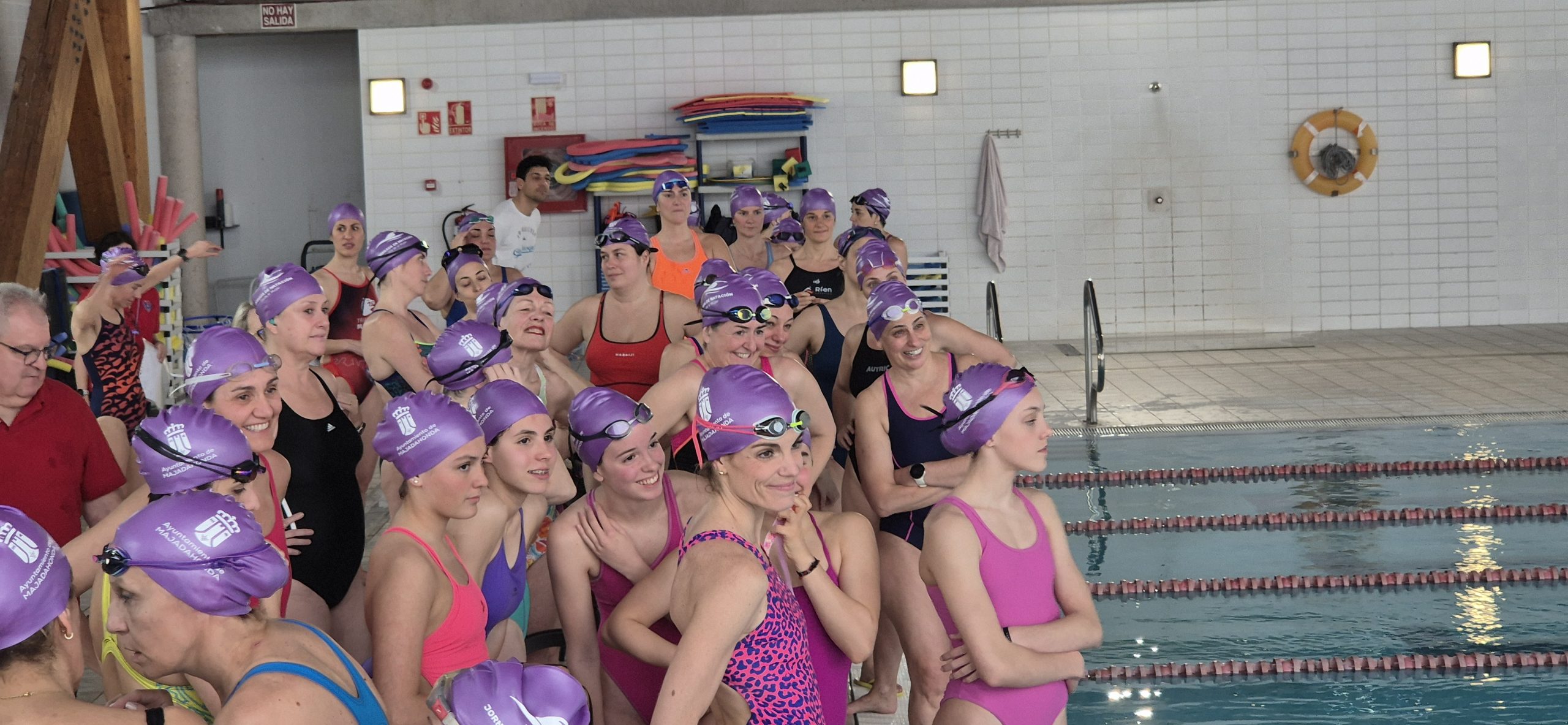 Con el lema Porque JUNTAS somos más fuertes, conseguimos reunir a más de 50 mujeres de todas las edades y niveles de natación en la piscina de Forus Valle de la Oliva (Majadahonda) para disfrutar de esta jornada única de relevos de 50 metros libres por equipos.